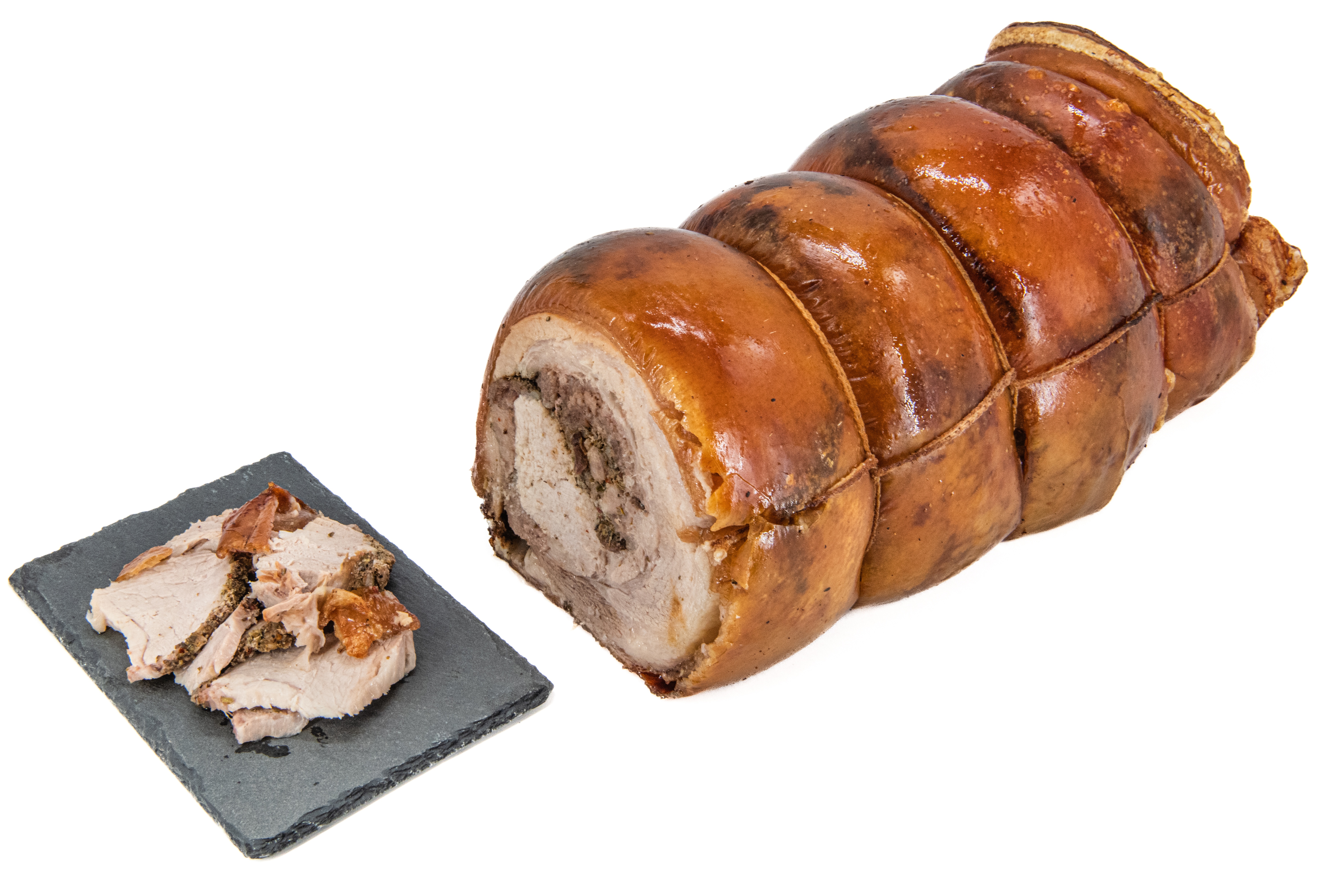 La porchetta è un'icona culinaria italiana e nel nostro Salumificio la prepariamo seguendo metodi tradizionali che risalgono a generazioni. La nostra porchetta è un capolavoro di maestria, una combinazione perfetta di carne di maiale di alta qualità, erbe aromatiche e spezie selezionate. Ogni fetta è un viaggio sensoriale che vi porterà direttamente nel cuore dell'Italia. Gustate la porchetta e scoprite il vero significato del sapore italiano.